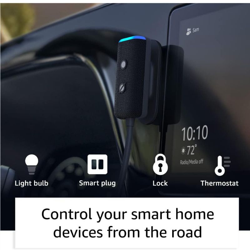 اليكسا من دون استخدام اليدين - تصميم خفيف سهل للوضوع في سيارتك، مزود بخمسة ميكروفونات مدمجة لتتمكن اليكسا من سماعك بوضوح حتى مع وجود الموسيقى أو مكيف الهواء أو ضوضاء الطريق. يتضمن شاحن سيارة سريع لشحن هاتفك أثناء التنقل